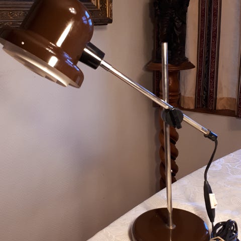 Vintage bordlampe med bøyelig arm. Sølvfarget. Ca. 35x13x13. Hentes på Vestnes eller bringes til Molde etter avtale.