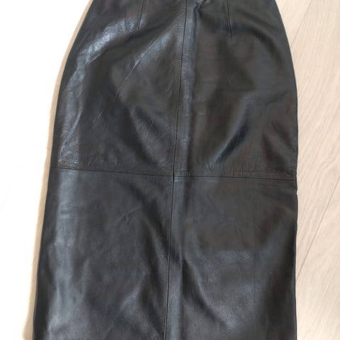 Det er ekte skinn foran og stoff/tekstil med usynlig glidelås bak.