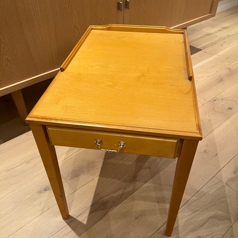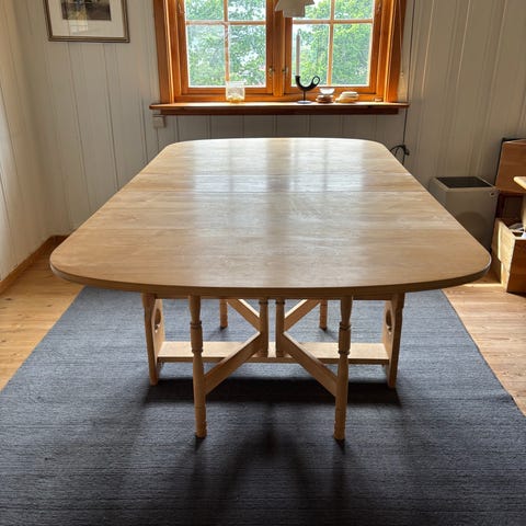 Akk så vakkert klaffebord produsert av Tonning og Stryn. Solid og med mulighet for å ta ned klaffene, da er det 70 cm bredt. Selges grunnet plassmangel, har godt av en puss. Vurderes solgt for 2000 eller høystbydende over
