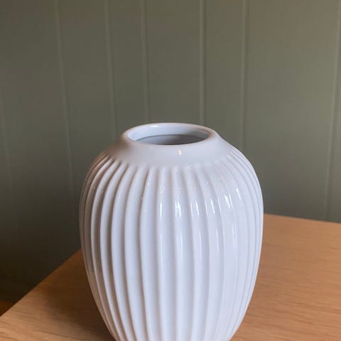 Kjempefin mintgrønn farge. Vase fra Kähler. Stått for det meste i skapet eller med strå oppi. Nypris er rundt 800kr