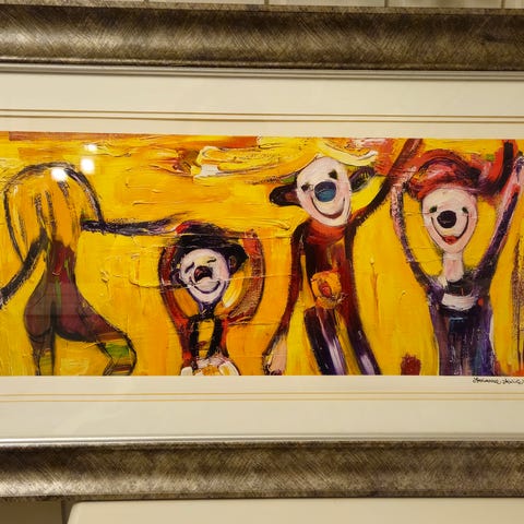 Selger « vi kommer hjem nå mamma» av Marianne Aulie klovn optimist, ferdig innrammet og er i fin stand 🖼️