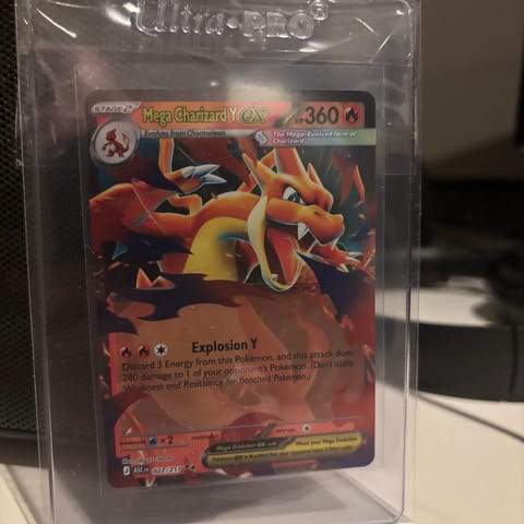 Charizard EX 12/106 fra XY Flashfire (2014). Kortet er i god stand, men har noe kant-slitasje og en liten bøy som vises på baksiden.( Se bilde )