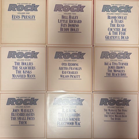 Komplett samling History of Rock,volum 1-40 + 60 assortert fra Hollies til Carl Perkins. Selger deler eller alt under ett. Bilder kommer neste uke. Totalt ca 130 stk. Gi Bud