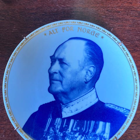 H. M. Kong Olav V 80 år 1983 Alt for Norge platte Royal Albert opplag 200 stk