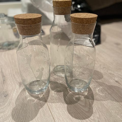 Karaffel høyde 28 cm - stor bolle høyde 12,5 cm - liten bolle høyde 8 cm. 300,- pr stk