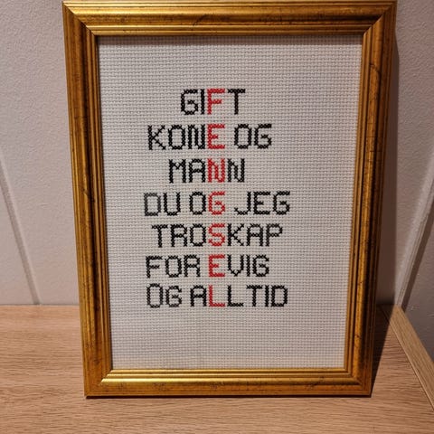 Brodert, i glass og ramme. " Kvinnen skal," 38 x 42