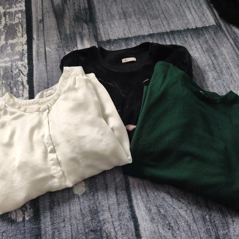 Tre bluser og en genser - mellom 20-50 kr per plagg eller 120 for alle fire samlet