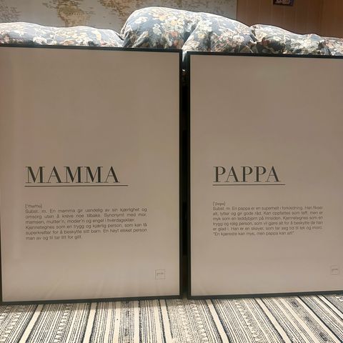MAMMA gull/svart poster fra Picture It selges. Svart bilderamme i plast og glass følger med. 30x40 cm.