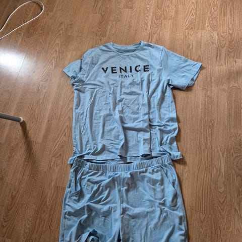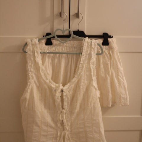 Et sett med blazer og shorts med hullbroderier. Størrelse XL. Kun prøvd på.