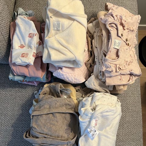Det meste av klærne er pent brukt, noe ubrukt og noe godt brukt 😊 flekker kan forekomme på de lyseste klærne, aldri prøvd å fjerne 🌼