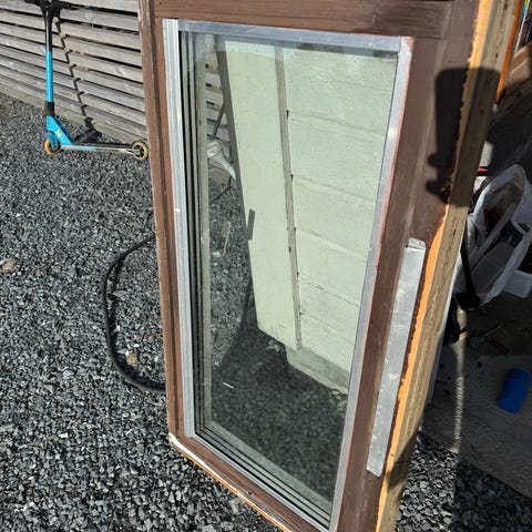 Dobbelt glass vindu som er 210cm lang å 100 cm høy