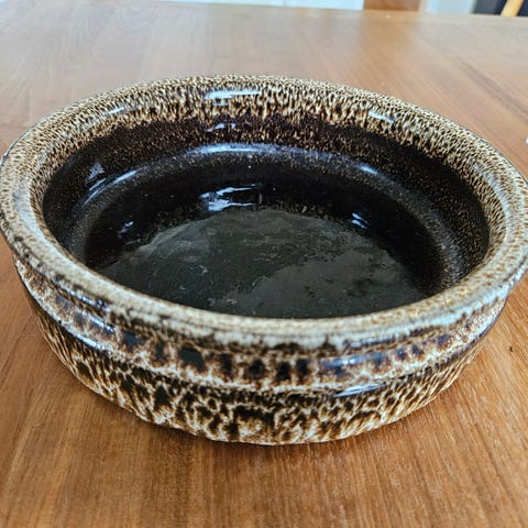 Lite brukt. Kunsthandverk. Høyde 18cm, diameter 15cm.