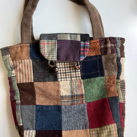Tøff veske av kordfløyel og hanker av tre selges. Vesken er fin stand,