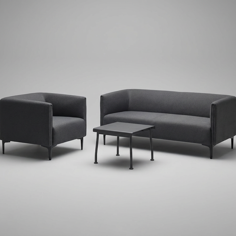 Komfortabel lenestol i Bauhaus-stil. Bærer preg av bruk, men er i ellers god stand. Sofaen er i kunstskinn.