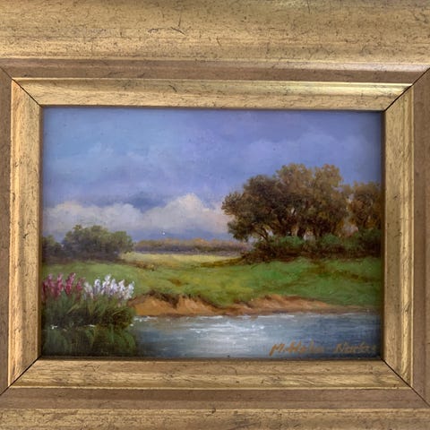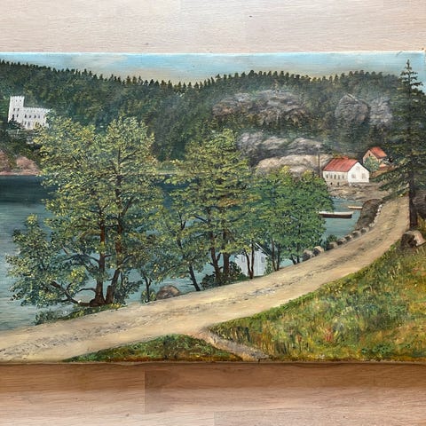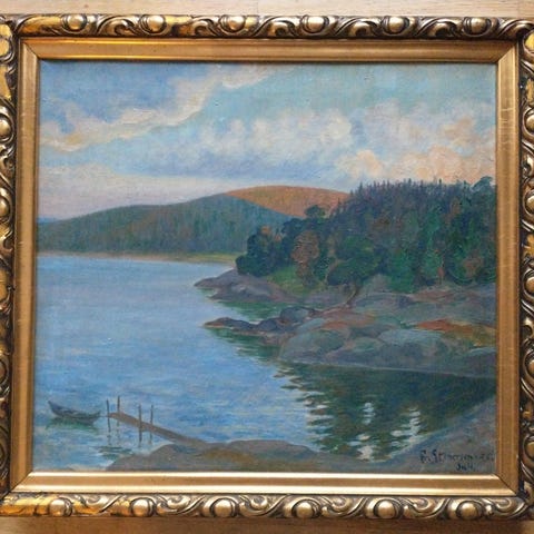 Olje på lerret. Yttermål ramme: 43 x 52 cm. Kan sendes.