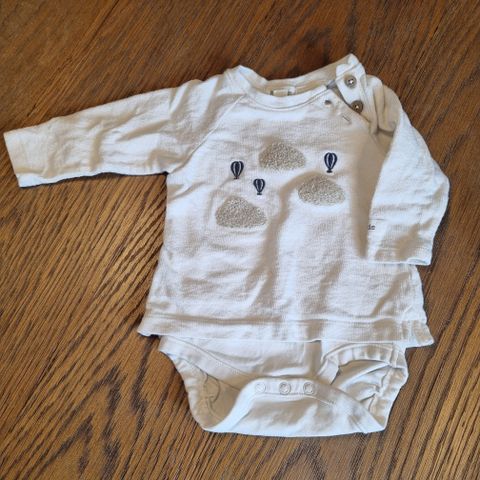 Selger to søte bodyer, en sparkebukse med Ole Brumm motiv og lue. Str 56. Alt hvitt/lyst og buksen har nude striper. Luen passer nyfødt og opptil 1 mnd vil jeg si. Alt pent brukt.