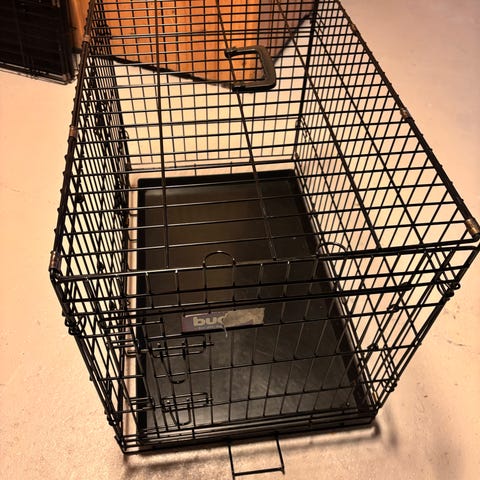 Selger et pent brukt hundebur.
