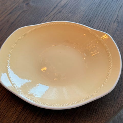 Formen er typisk Benny Motzfeld, men de fargen og særlig de svarte feltene er unike. Det kan være en prøve og er muligens "one of a kind".