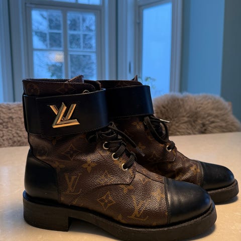 Super fine sneakers fra Louis Vuitton. De er i str 36,5 - men for store for meg som vanligvis er 37, derfor vil de nok passe en 38 bedre. Derfor lite brukt. Selges med skoposer.