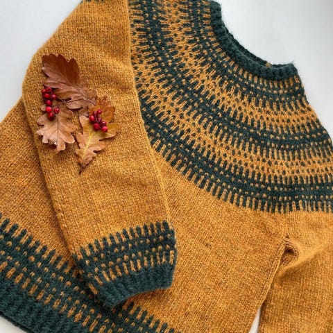 Nystrikket genser i garnet HipKnit Fluff. Strikket etter mønster/modell Fizzy Pop fra Embraknit.