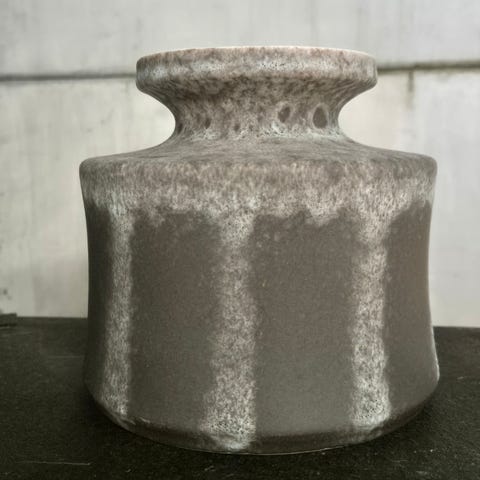 Brun, orange keramikkvase fra 70 tallet, ukjent opprinnelse.