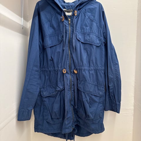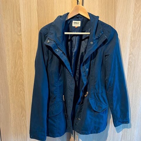 Lett og fin vår- og sommer jakke fra Only. Jakken er i str S og er i mørkeblå.Har 2 lommer i front med trykknapper og snøring.Lite brukt.