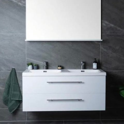Lind Monaco baderomsspeil 120x70 cm med hylle i høyglans hvit.