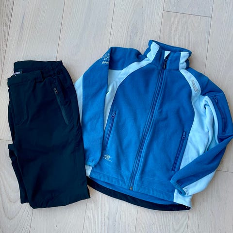 Hel og mye bruk igjen, men er en del misfarging og flekker som ikke gikk vekk i vask. Se bilder. Topp til ekstrajakke eller i barnehagen 😊