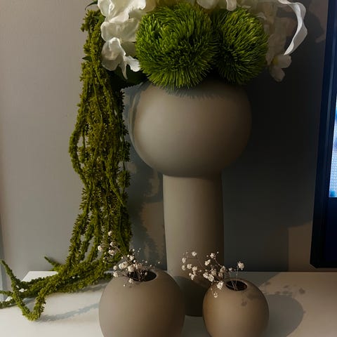 2 flotte keramikkvaser fra Kristina Dams serie «Dome» selges samlet, str. small og medium fra serien