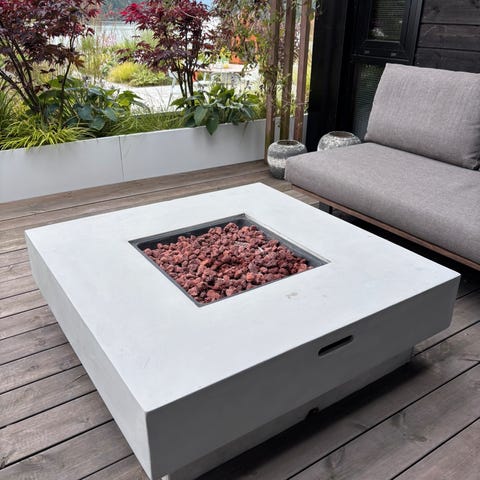 Ny ubrukt Lava Tube gass brenner med sort glass stein. Medfølger rød lavastein og rep sett og trekk.