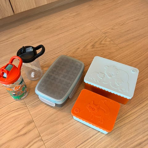 Matboks til barn med flere praktiske rom. Nisteskrinet er i 2 etasjer. Lite og pent brukt. Størrelse 9x17cm