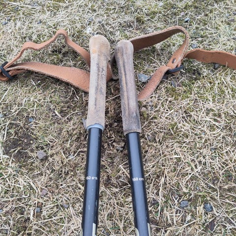 Bamsus skistaver 125 cm lange. Passe utmerket som pynt eller til påskeskirennet.