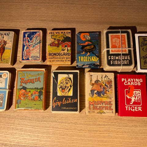 Selger dette kortspillet; Old Maid, som ser ubrukt ut, fra 1975 med alle 45 kortene. Plastkoveret har en sprekk, se bilder