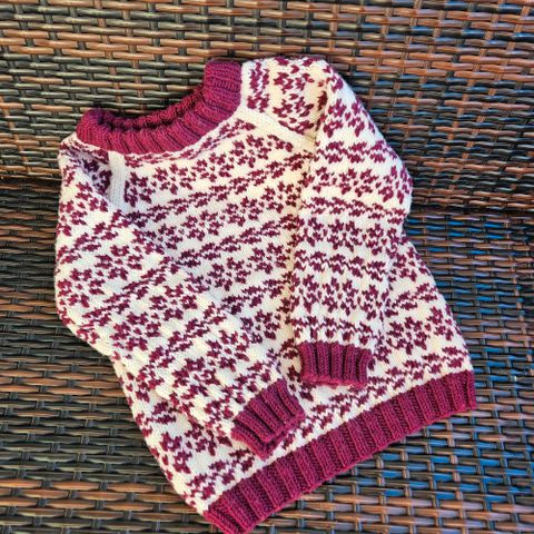 Hjemmestrikket Marius Genser i str 1år. Farge rosa og gul