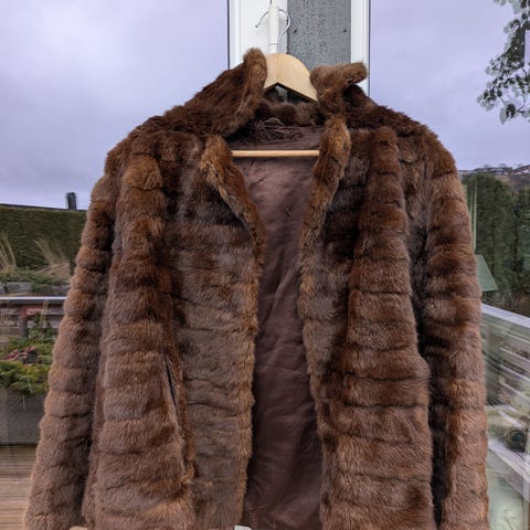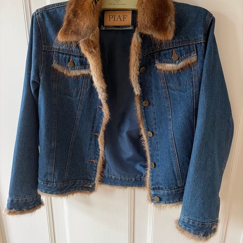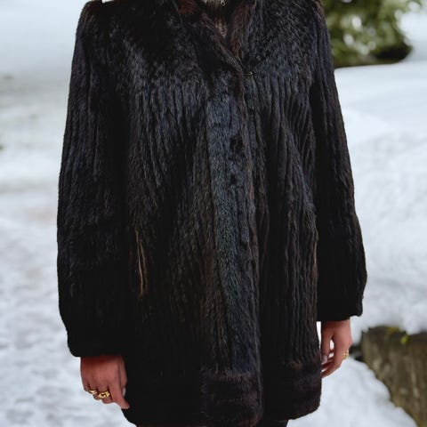 Jakken er kantet og foret med ekte mink (ermene er foret med stoff). To brystlommer i front. Lukkes med knapper.