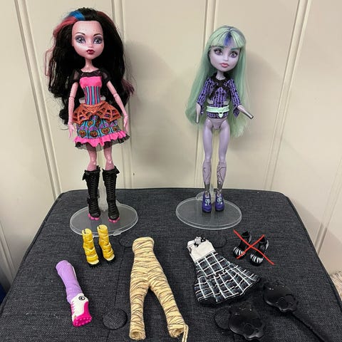 Monster high dukker Draculaura (SOLGT) og Abbey (første wave).