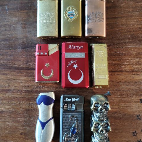 8stk zippo etterligninger. . 5stk MED innmat. 3stk UTEN. 600kr sammlet. Kjøper betaler for frakt.