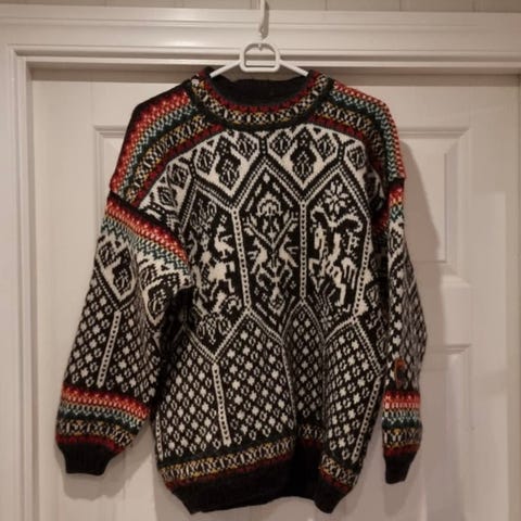 Offisiell genser fra Dale of Norway i 100% ull med mønster fra vinter- OL i Albertville 1992. Genseren er i farge hvit, str. L (unisex). Selges for kr 999,-. Selger også samme genser i str. XXL (unisex), se egen annonse. Porto kommer i tillegg. Genseren fremstår som ny og ubrukt.
