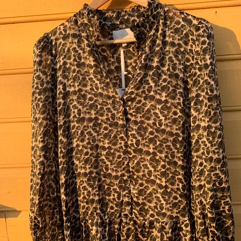 «SORT/LILLA LEOPARD KJOLE M/D/SKINN»,STR. 44