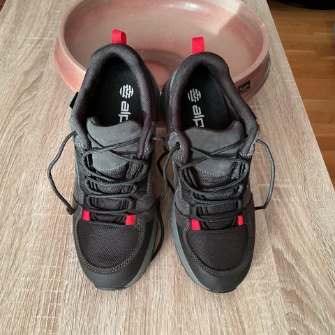 Skoen bare ble brukt i skog og mark i 10 -12 ganger.,Ingen slitasje eller skade. Skoen er også impregnert før bruk.