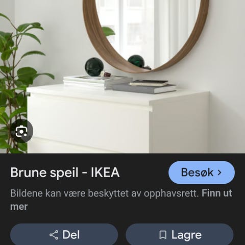 Pent brukt rundt speil fra IKEA Stockholm serien, hvit ramme i tre. 80 cm.