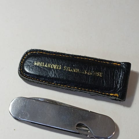 Tidemanns korkåpner med kniv og gaffel i etui til salgs..
