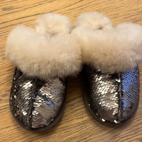 Barn tøfler fra Lune str.28 laget av sauskinn .