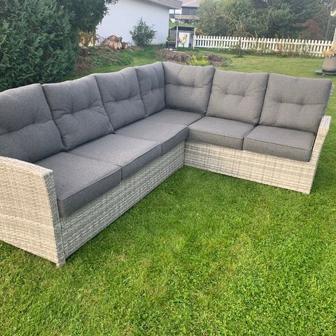 Selger veldig fine hagemøbler med stor bord med glas plate over. Kan deles i 3 deler