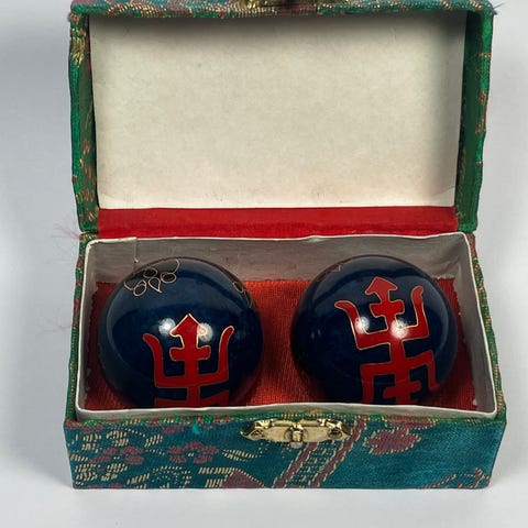 Selger et sett yin yang baller fra Kina. Trolig 80 tall.