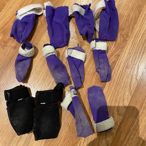 Selger ett sett med vannavstøtende fotposer som ble for liten hos oss. (Passet ikke til en Bichon bolognese)