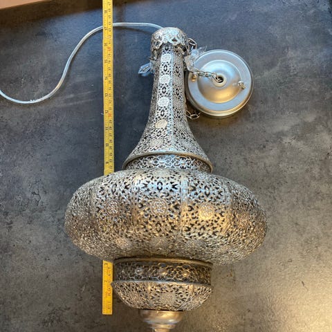 Indisk/marrokansk inspirert tak lampe, helt ny, selges kr 700,- kjempe lekkert lys. Den er fra ptmd collection.
