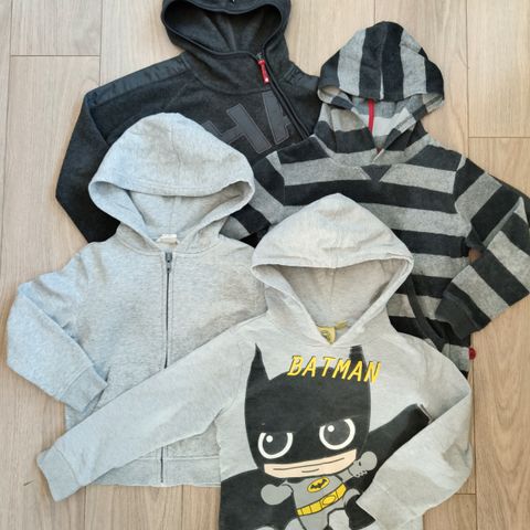 Klespakke med 3 gensere og en hettejakke str 110