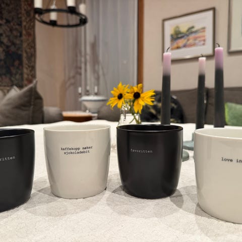 6 kopper/krus, hvorav to og to har samme mønster selges samlet. Koselig mønster med litt skimmer i fargene. Gode å holde i og å drikke av, men jeg har så mange kopper at disse stort sett bare har blitt stående til pynt i et glasskap. Nå håper jeg noen andre kan få glede av de🤩 Kan sendes mot porto.