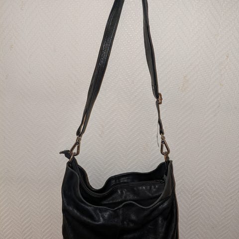 Nydelig skinnveske; vesken er 40 cm x 39 cm.